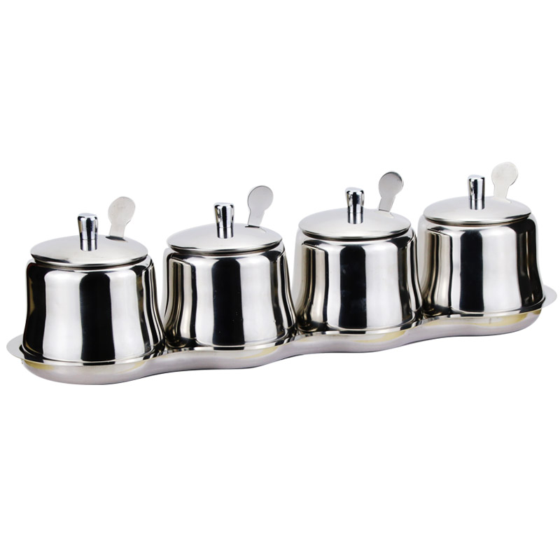 304 seasoning jar 4 pieces of depository dish collection Pepper Pot (visible glass cover) 304 Seasoning Jar 4 pieces