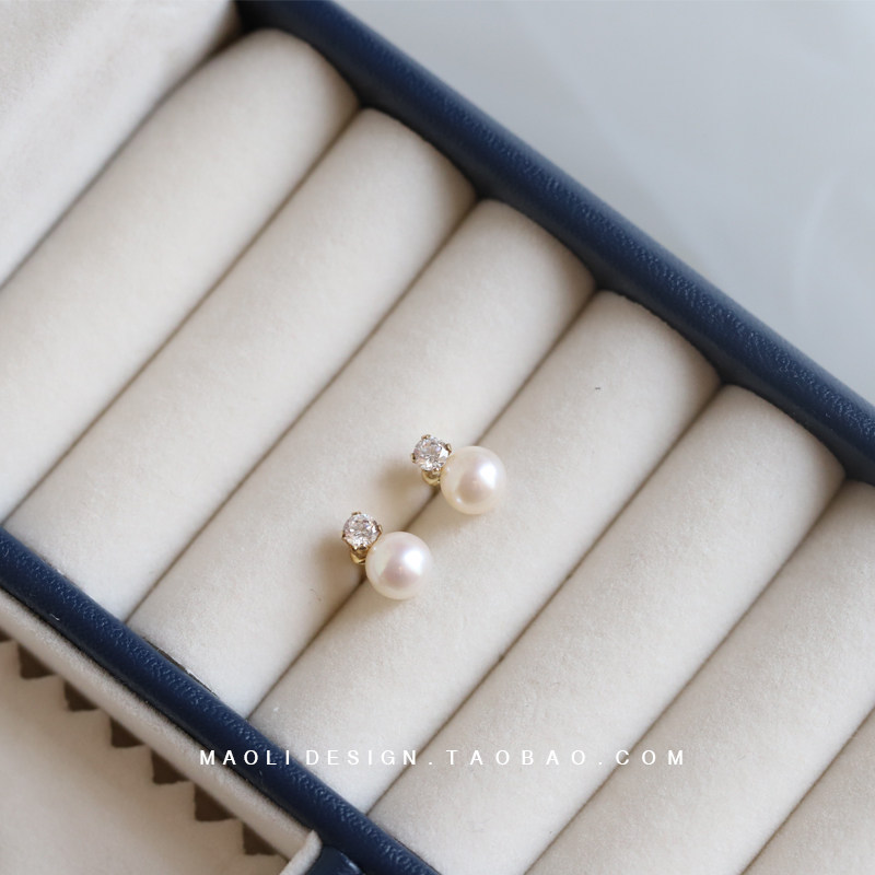 MAOLI Pear Flower Original 14k Bag Gold Natural Pearl Earring Simple Little - proof Female