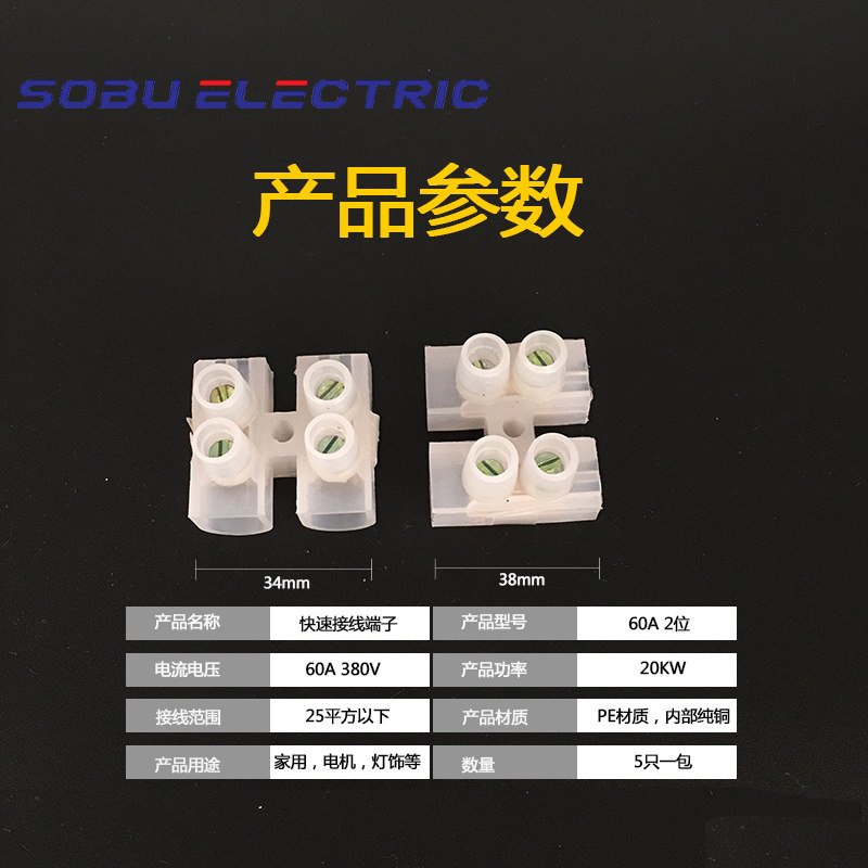 Fast copper sub-wiring plastic terminal row circuit lamps household electrician 2 in 2 out 2 connectors high current