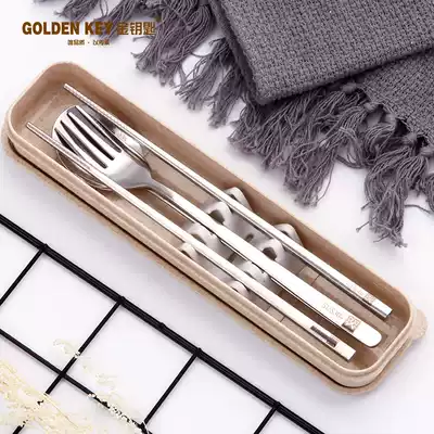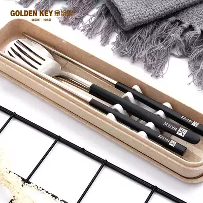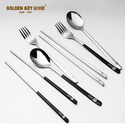 Golden Key 304 stainless steel chopsticks spoon set portable tableware three-piece fork grab-and-go kuai shao 2-piece set