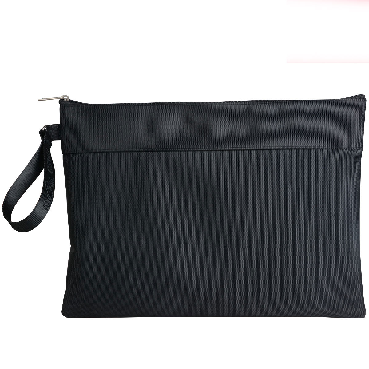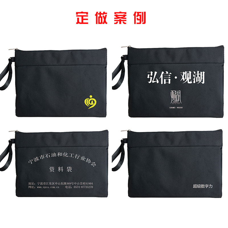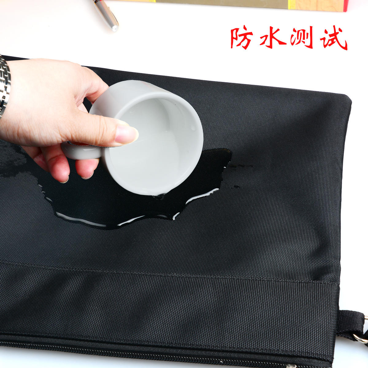 Nine Millennium Brief Business Pure Black Thickened Hand Pull Chain File Bag A4 Double Layer Waterproof File Bag Oxford Cloth Briefcase Archive Bag Custom Handbag Web Version Print Logo Print Logo