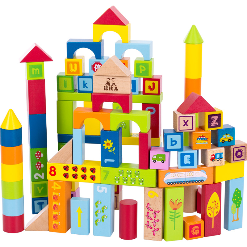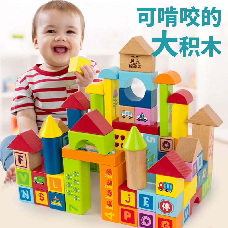 Solid Wood Large Grain Building Block 3 Year Old Baby Boy 0 Puzzle Toys 1 Assembly 2 Baby Enlightenment 4 Buckets of 6 Wood