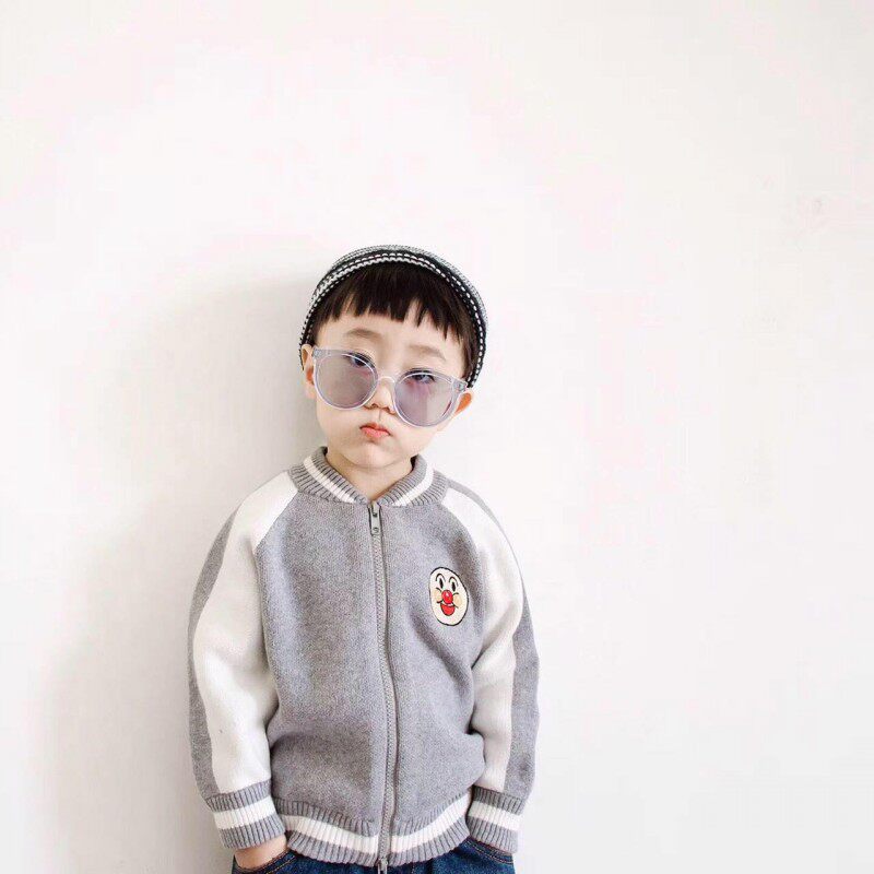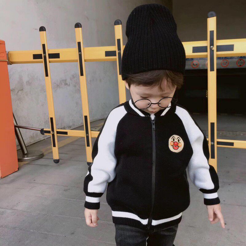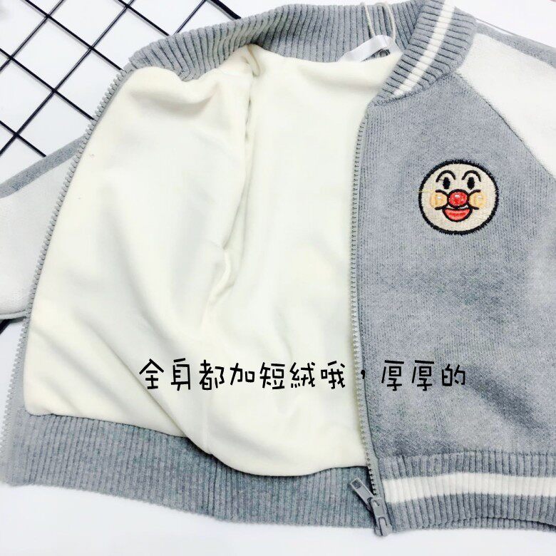 (Joe's) autumn and winter new pint of male and female child face ultra-cartoon embroidered knitted cardiovert children with velvety fabric stickup
