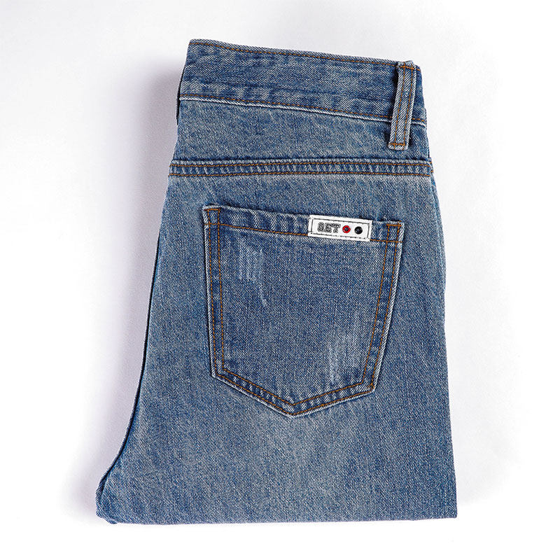 Yang power Tongtong Washed Jeans Woman Straight Barrel Harbor Taste Retro 90% Harun pants ulzzang Loose Beggar Pants