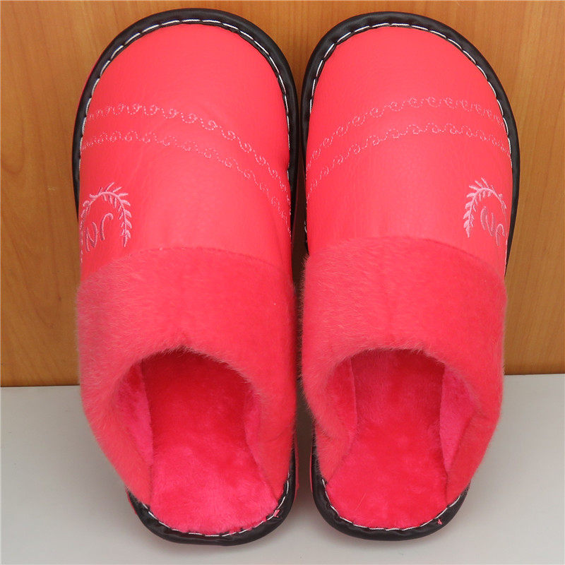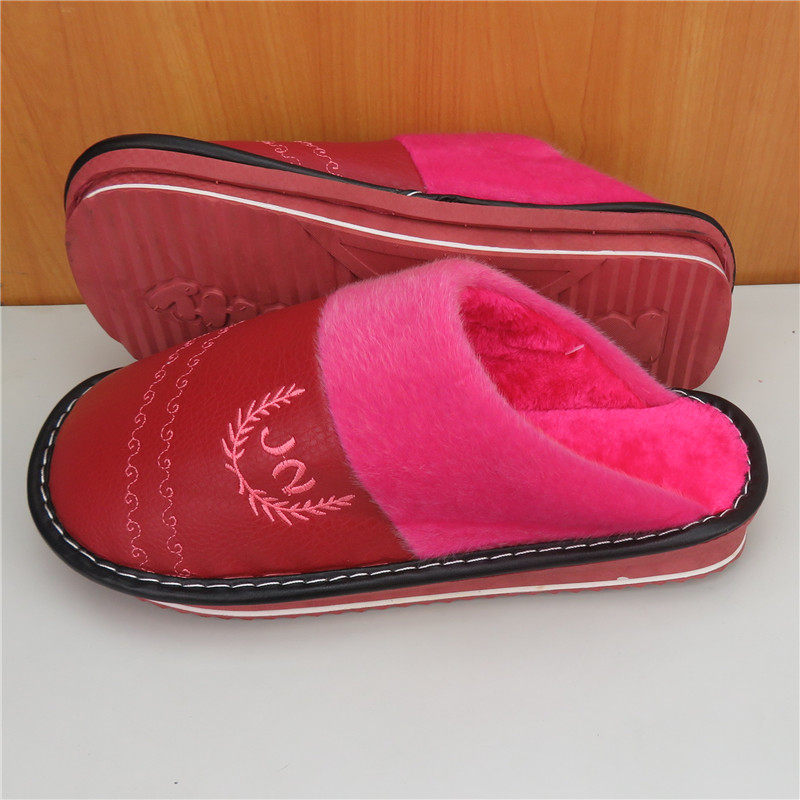 Plus mast size cotton slippers female 44 leather face 43 waterproof 42 thickened 45 warm 46 46-slip 47 Topping cotton tug 48