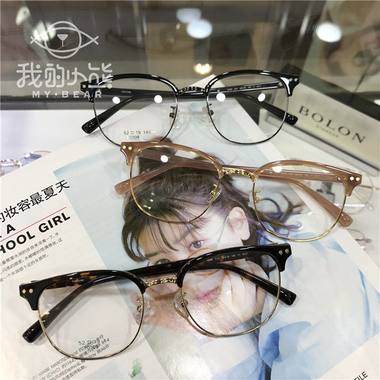 Glasses frame men's Korean version of the trendy retro simple women's anti-blue light myopia half-frame personality glasses frame round face net red models