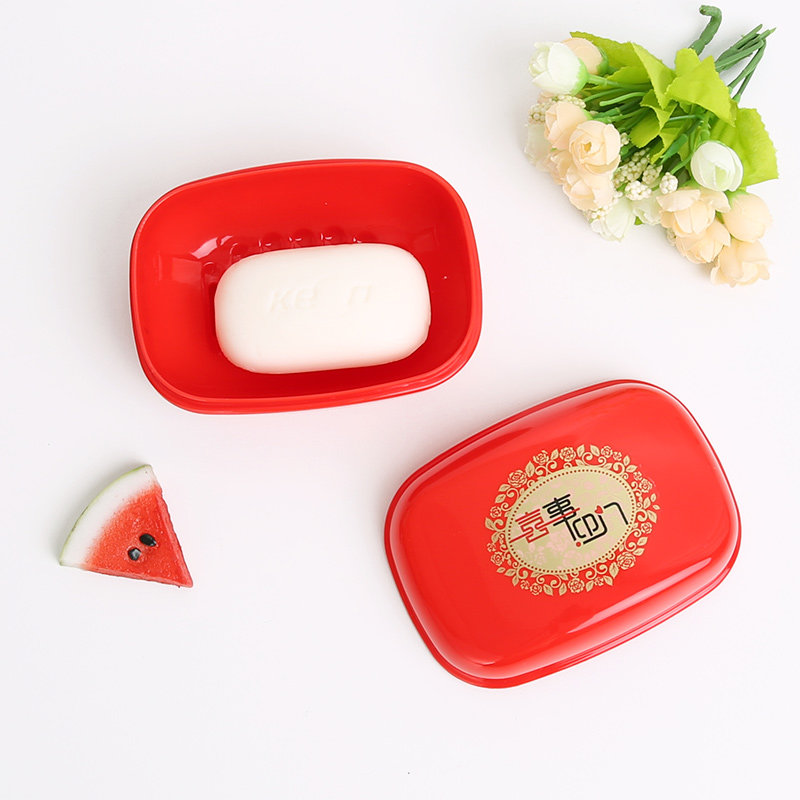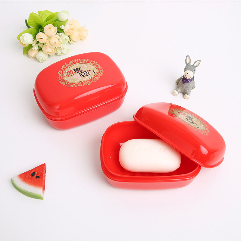 2 Festive Soap Boxes Plastic Soap Cartridges Cap Big Soap Rack Red Wedding Leachate Dressing Room Laundry Soap