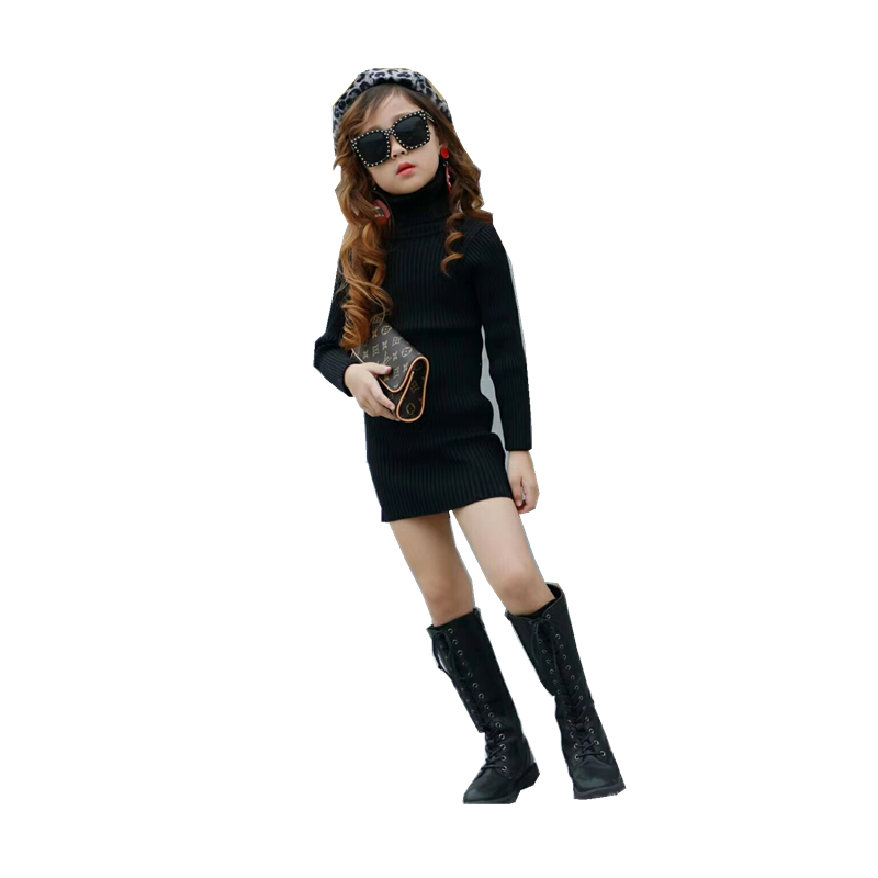 Girls' black bottoming long skirt 2022 autumn and winter new children's baby turtleneck lengthened jumpsuit
