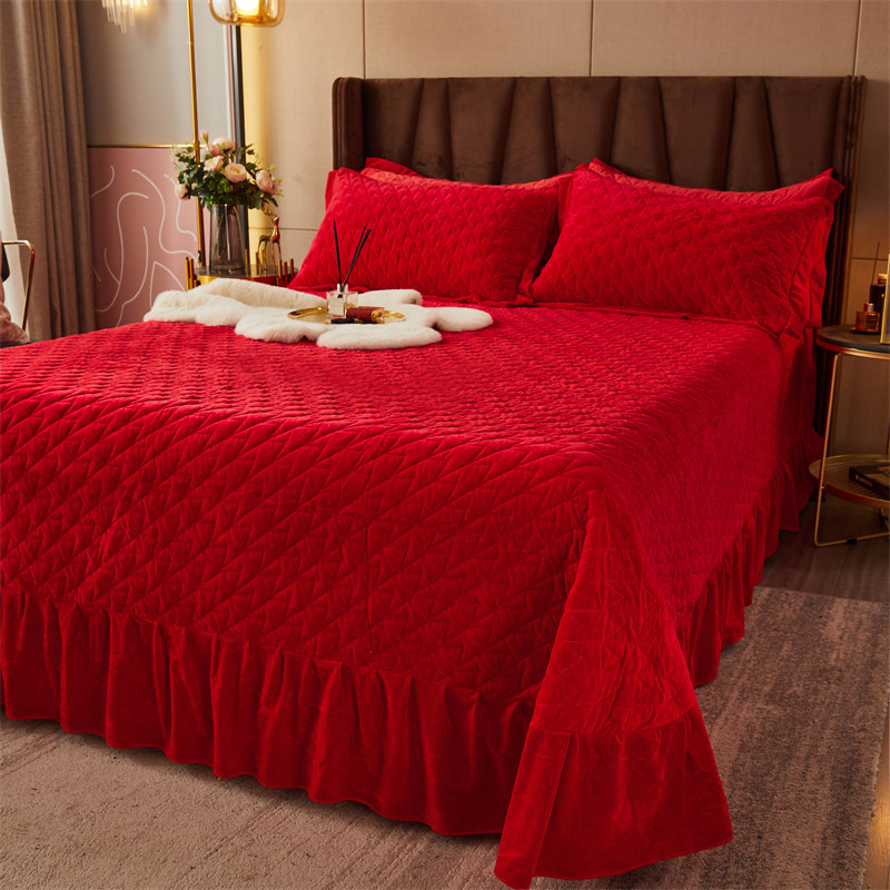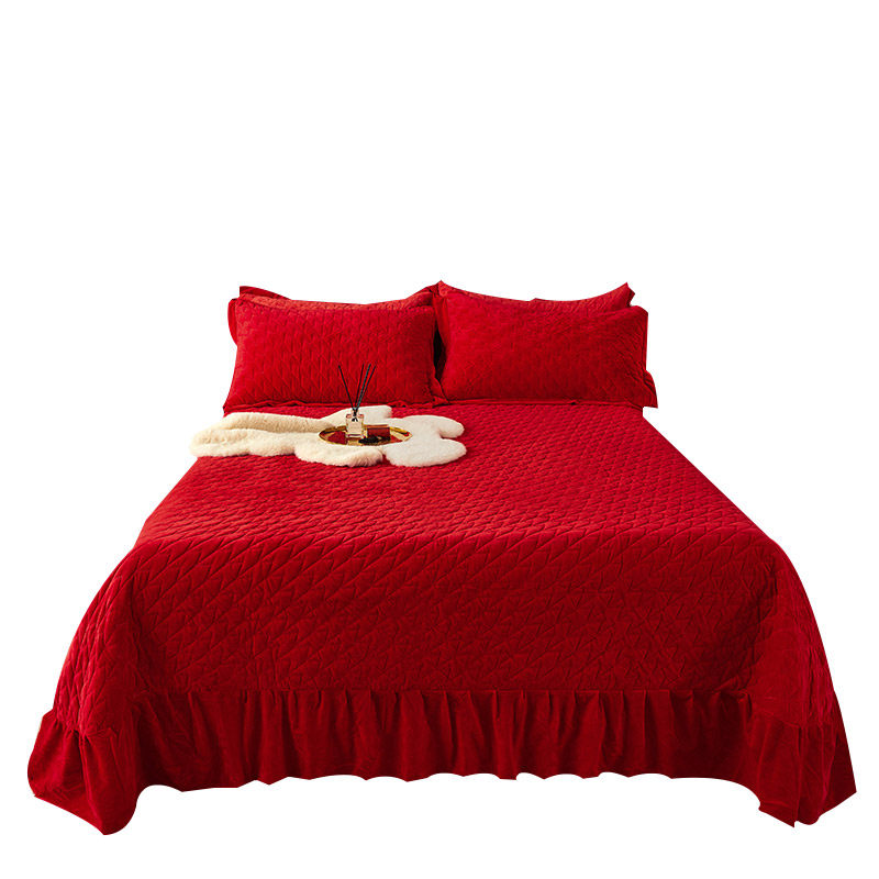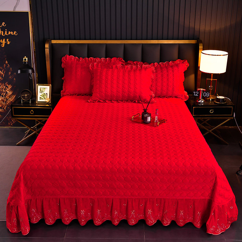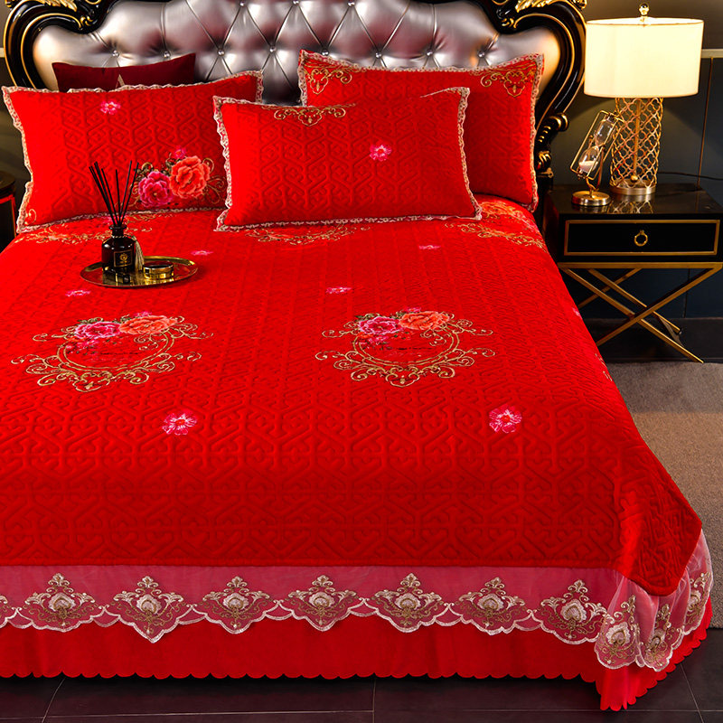 High-grade big red crystal velvet bed cover three-piece set wedding winter quilted single-piece warm milk velvet thick bed sheet