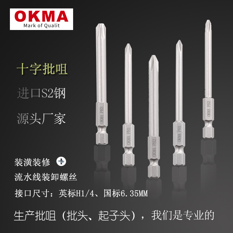 OKMA factory direct sales high wear cross batch head strong magnetic screw wind batch S2 steel lengthened screwdriver