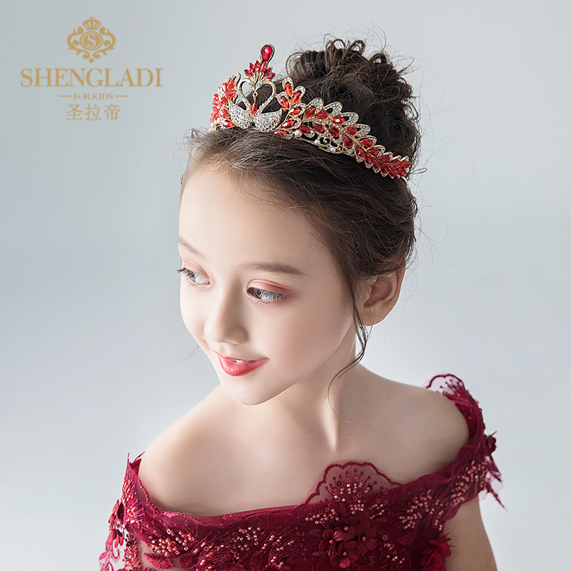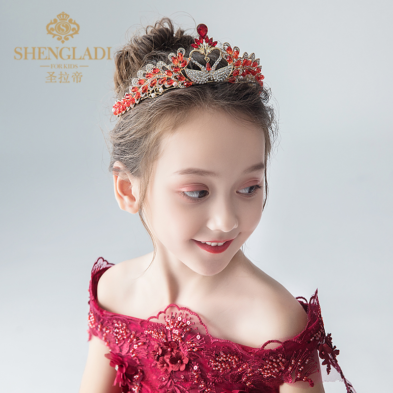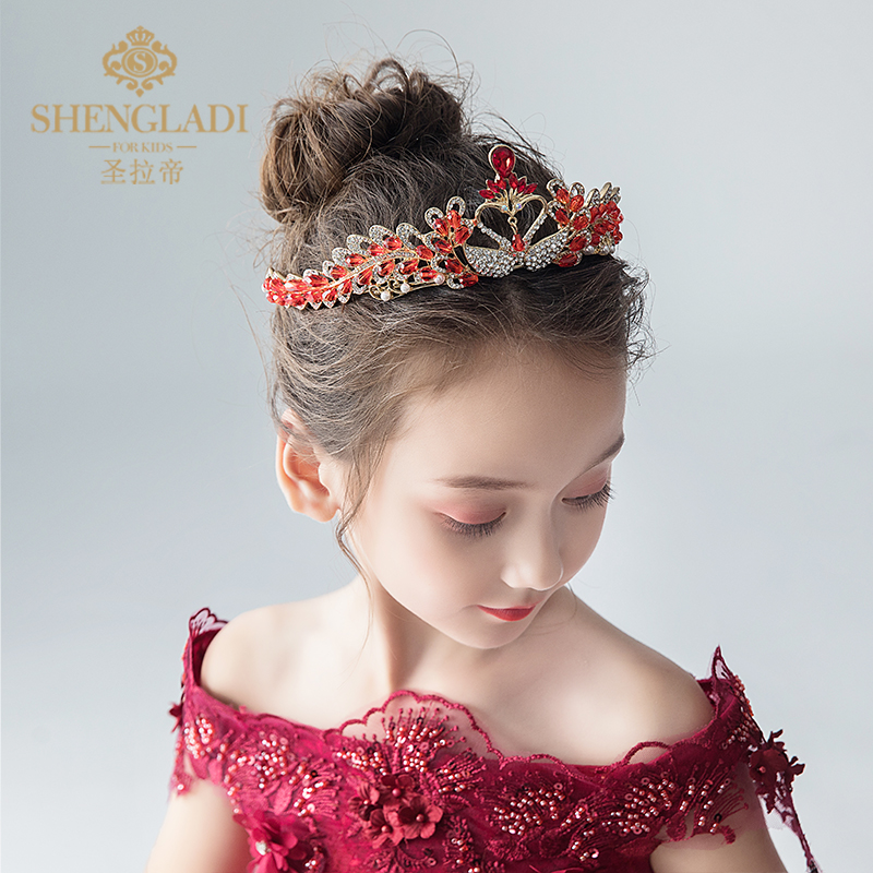 Children's crown headdress Princess Girl's crown Crystal Red Elsa Frozen Korean child birthday hairband