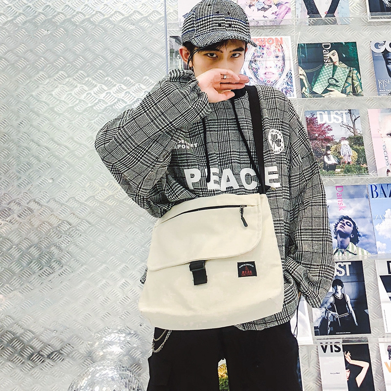 Korean version of Japanese embroidery INS college style girl messenger bag Harajuku retro messenger bag canvas shoulder bag for men and women