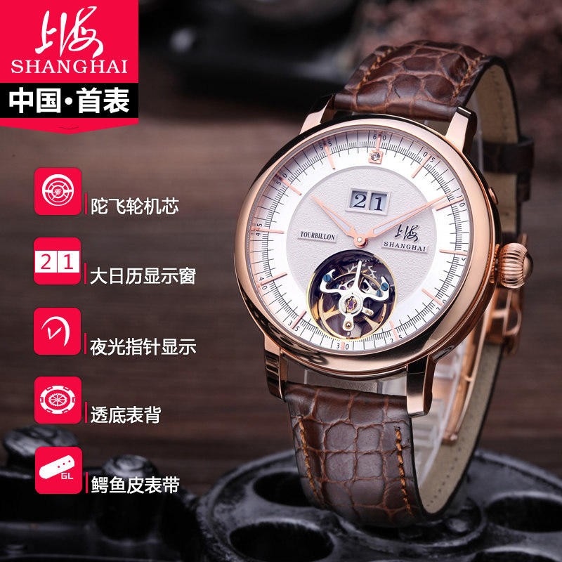 (Same model in shopping mall) Shanghai brand watch men's watch tourbillon hollow flywheel simple business waterproof men's watch
