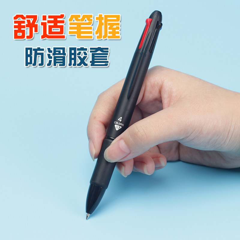 Vigorous multicolor ball pen four in one color long press oil pen four color student office multi - function pen press type 0 7mm black red blue green one multi - purpose