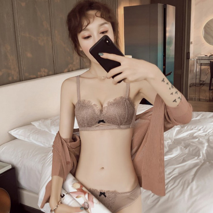 Japanese lingerie suit woman on thin lower thick bra to gather sexy no steel ring Lace Sweet to receive the secondary milk