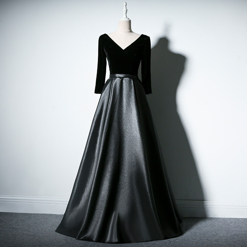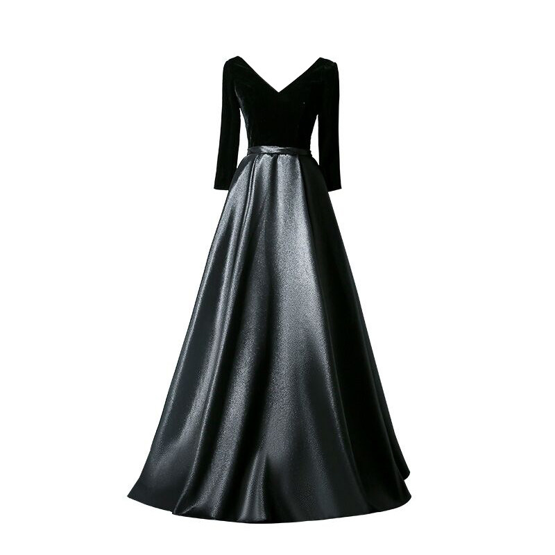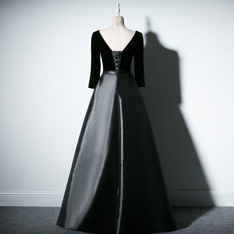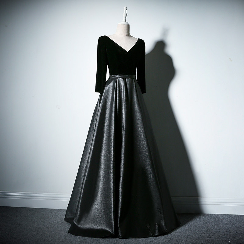 Black evening gown banquet 2022 new long version noble elegant sashimi host choir gown with long dresses