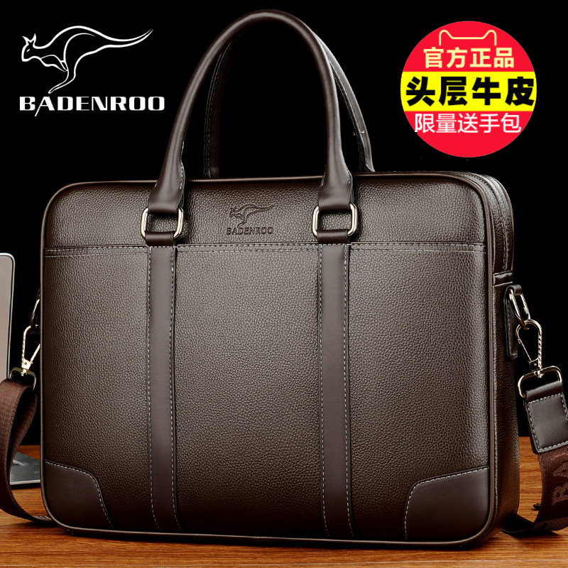 Biden Kangaroo Man's Leather Briefing Business Handbag Man's Bag Shoulder Sabble Bag Bag Man