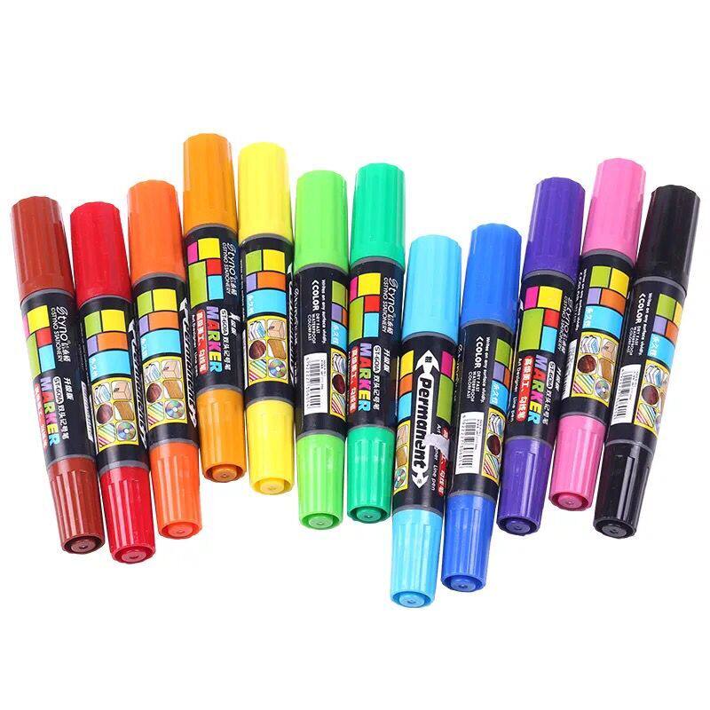 Letter Tai House Grand Double Head of the pen Colour Hook Pen Oily Mack Pen Cap Children Fine Art Drawing Pen 12 Color