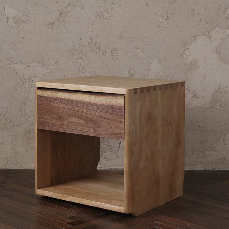 Mountain hidden creation Nordic black walnut all solid wood logs natural side bedside table drawer cabinet wabi-sabi wind Nordic