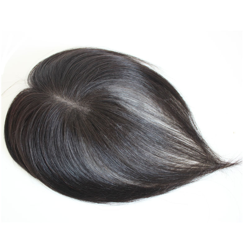 Real hair head partial replacement piece female seamless invisible cover white hair bangs wig piece light and fluffy replacement hair piece