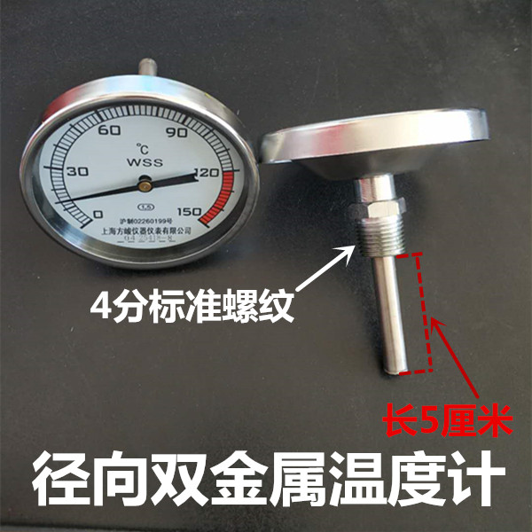 Bimetal thermometer 4 minute straight bend threaded pointer Bimetal thermometer Industrial boiler duct thermometer