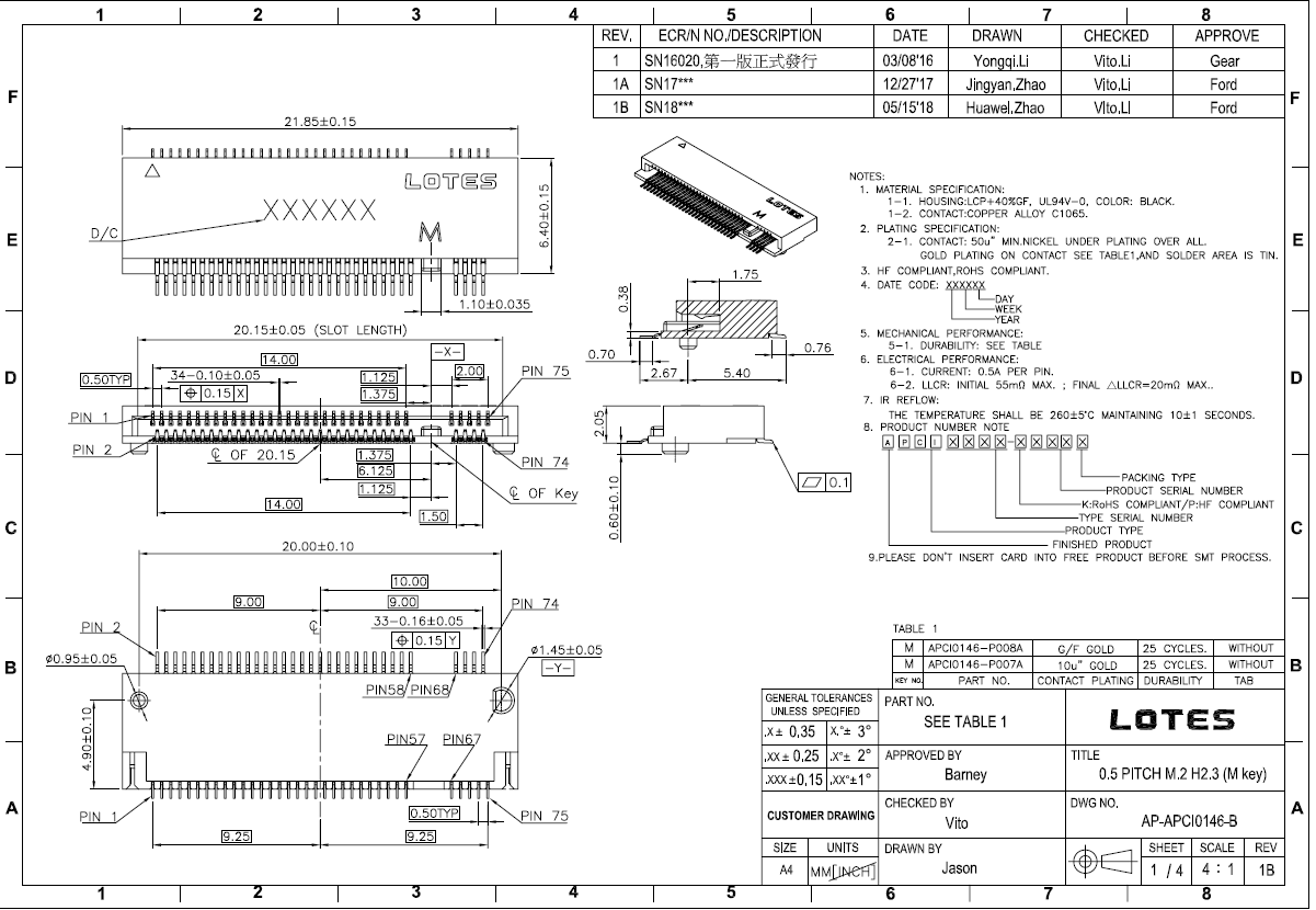 LOTES Jia Ze proud APCI0144-P001A original connector M 2 B-KEY H=2 3 socket spot