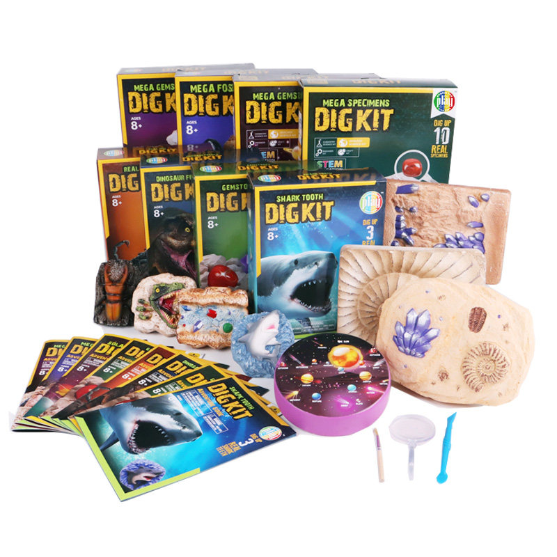 dig kit Children's Archaeological Dig Kit Toys Natural gemstone insect dinosaur shark teeth dig treasure