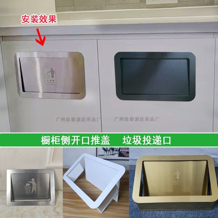 Custom 304 stainless steel side opening lid cabinet embedded concealed trash can lid square countertop push cover