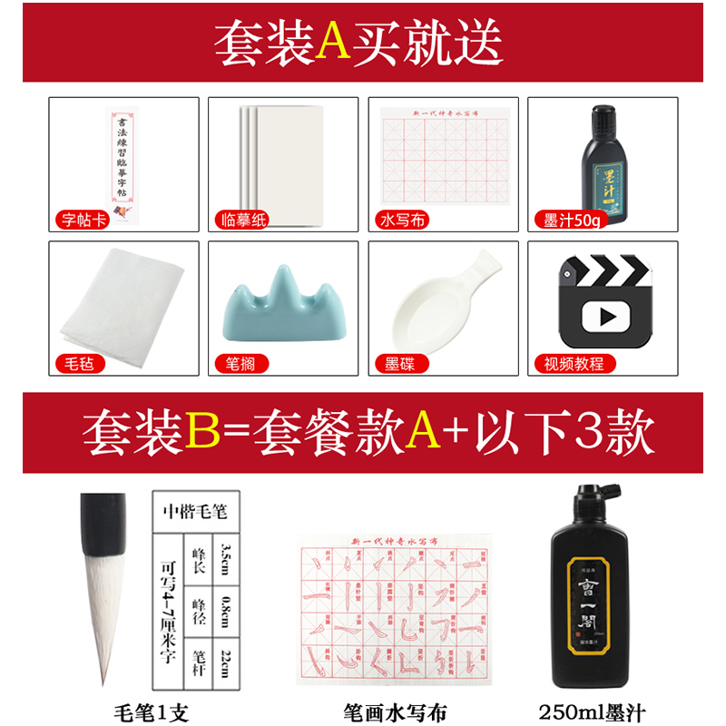 Single Pack (No Giveaway) Package A (Buy 1 Get 8 Free) Word Sticker Card Copy Paper Water Writing Cloth Felt Pen Mountain Ink Saucer Tutorial Set B (Buy 1 Get 1 Free) Plus Brush + 250ml Ink + Stroke Water Writing Cloth