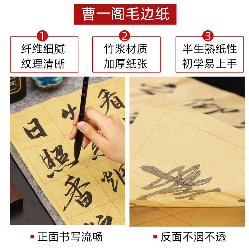 Cao Yige raw edge paper rice character grid calligraphy practice paper rice paper calligraphy special paper 28 grid students beginner practice with brush word paper thick bamboo pulp half raw and half cooked works competition paper