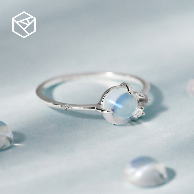 RHODON Moonstone index finger ring female fashion personality Sterling silver girl heart Simple gemstone ring Birthday gift