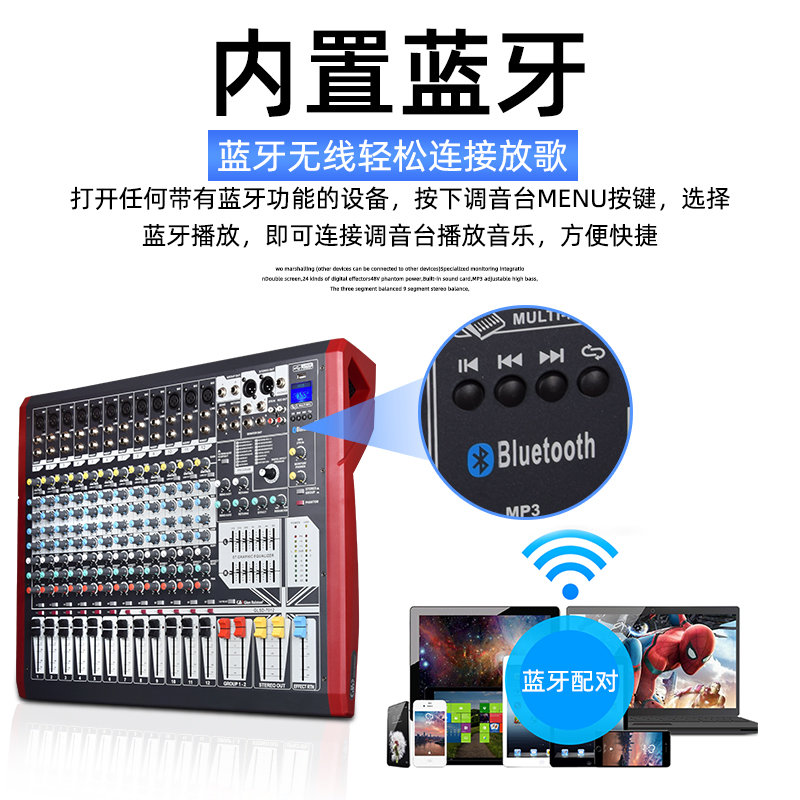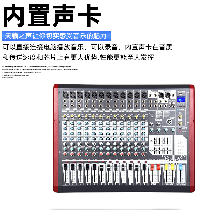 Glen Ralston Glenston Large Mixer Small Stage 8CH 12CH 16CH Digital Professional Reverberation Effects Sound Card Bluetooth With 4 Marshall USB Show Live Equalizer