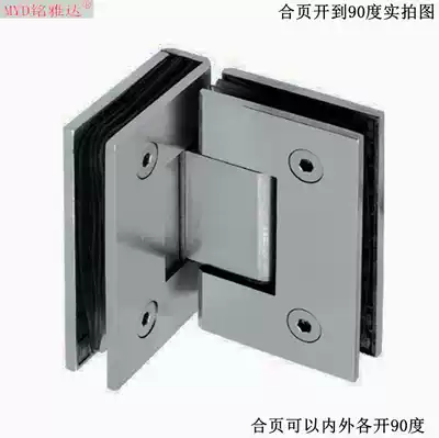 Solid stainless steel glass door hinge hinge 180 degree glass-to-glass flat open two-way glass bathroom clip