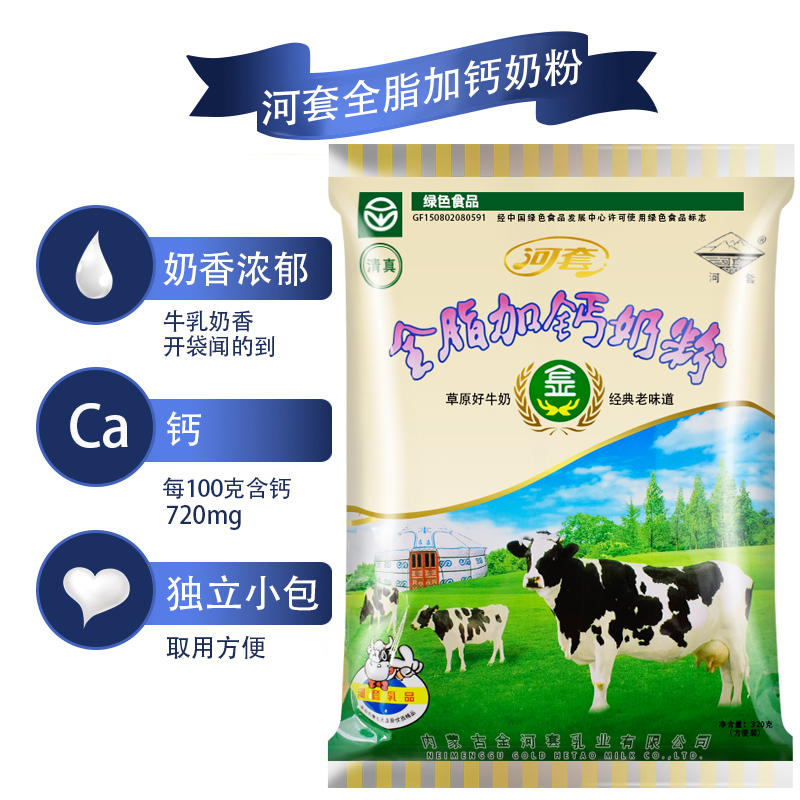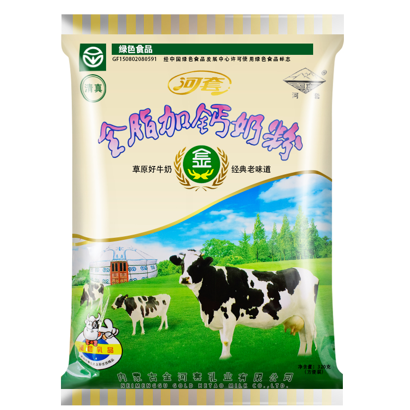 Hetao full-fat calcium-added milk powder 320g individually packaged Inner Mongolia specialty high-calcium family breakfast sweet milk powder