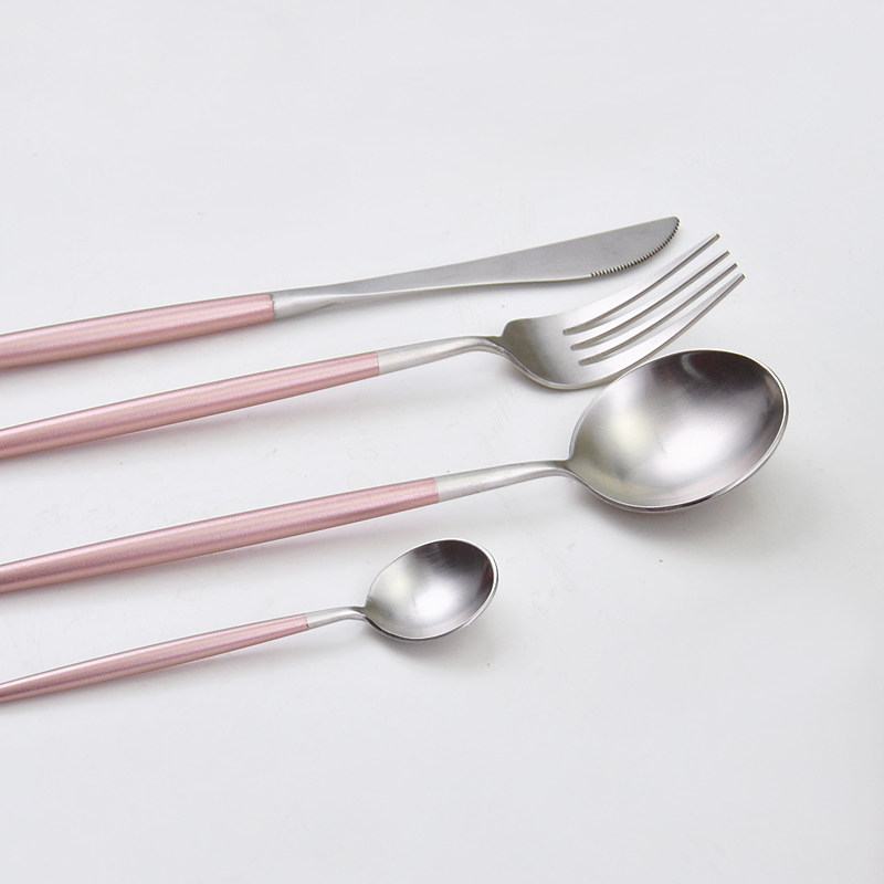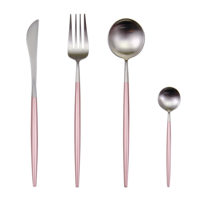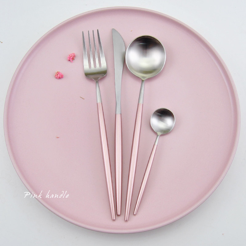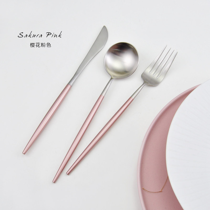 Portugal GOA Wind Cherry Blossom Powder Design 304 Stainless Steel Steak Knife Fork Spoon Long Handle Coffee Spoon Sweet fork spoon
