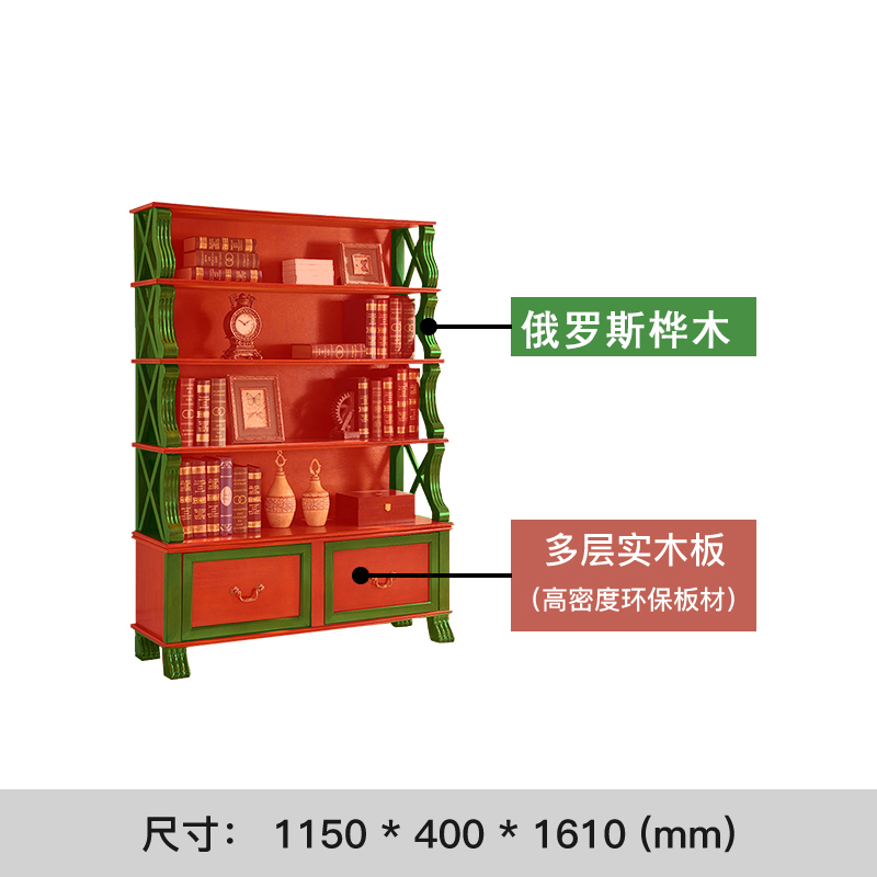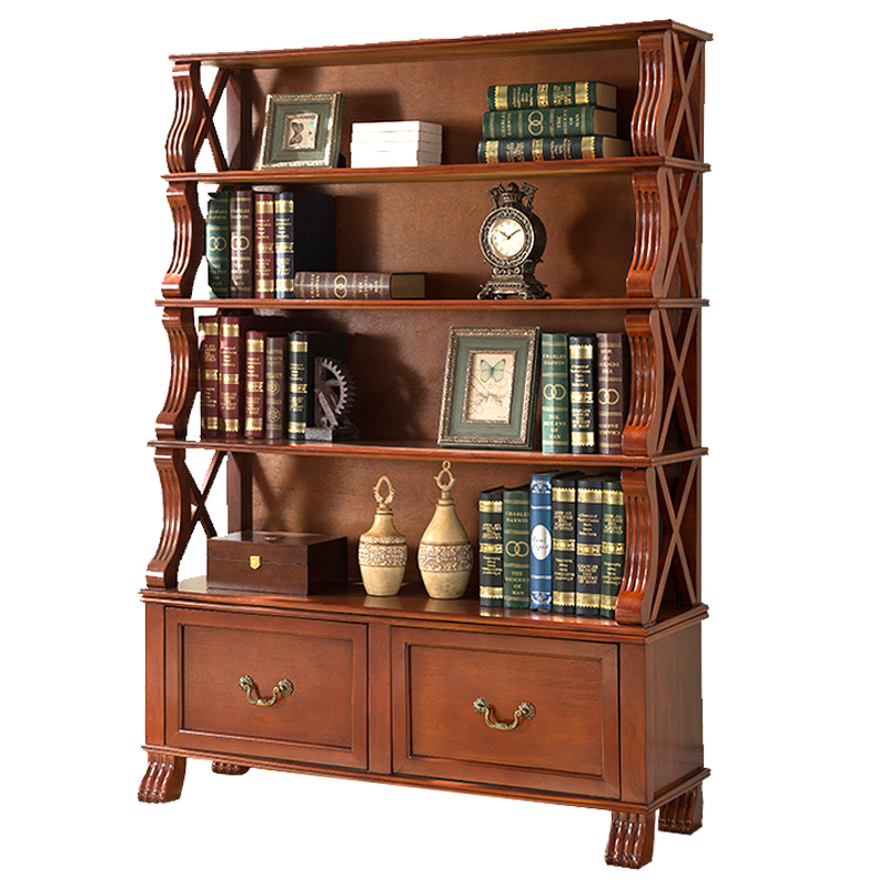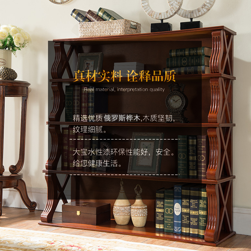 American country bookshelf solid wood bookcase European retro multi-layer floor-to-ceiling bookcase display cabinet display rack rack