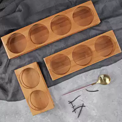 Yuma Japanese kitchen rack four-hole double-layer bamboo tray three-piece seasoning rack oil vinegar bottle storage basket rack