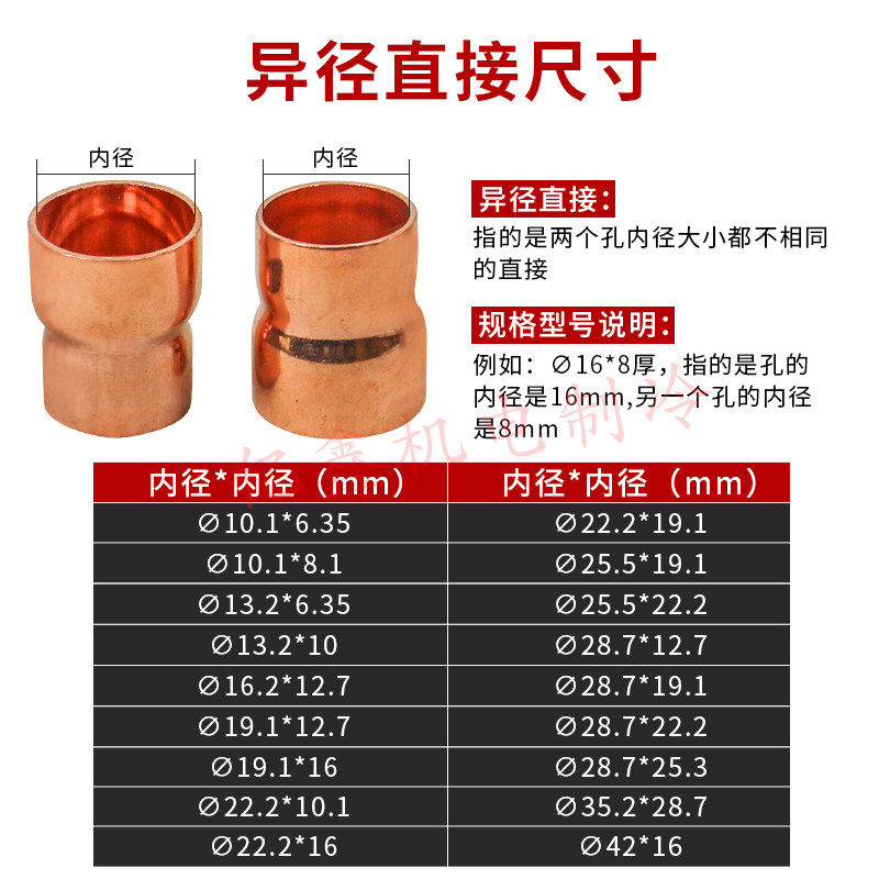 Straight for red copper Size head variable diameter copper straight-diameter copper direct copper pipe welding diameter-changing joint 6 35mm