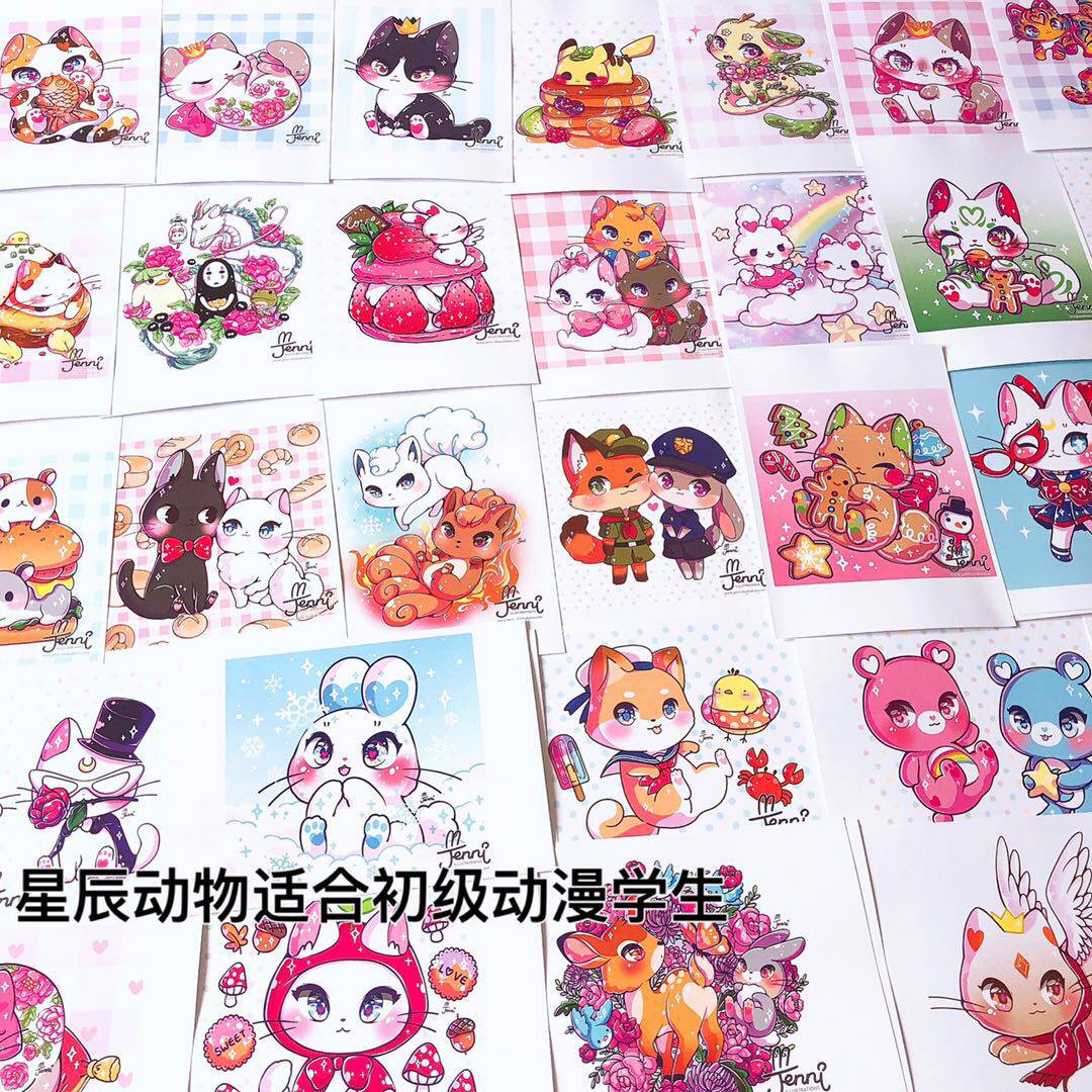 1 New animal color lead hand draw 2 new cartoon animal stars A4 size 4 days delivery A5 plastic seal within 7 days delivery A4 plastic seal