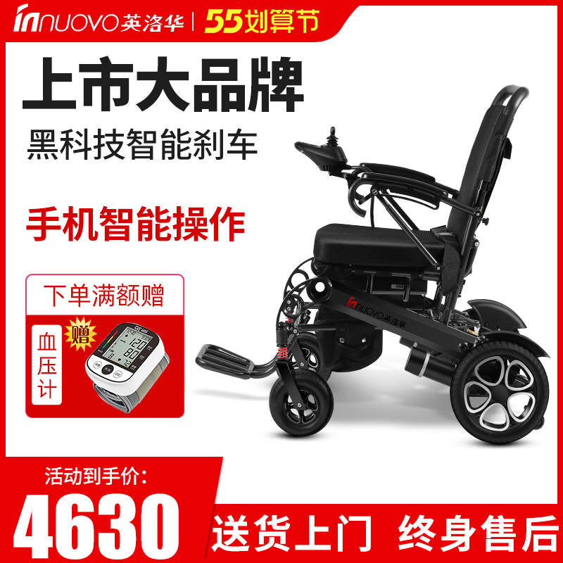 Yingluohua electric wheelchair intelligent fully automatic handicapped elderly step four-wheel folding ultra-light portable lithium battery