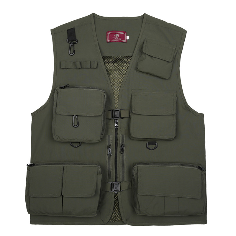 Summer new thin section Breathable Multipocket hip Hins Fashion waistcoat Casual Vest Jacket Pure Color Tooling Man