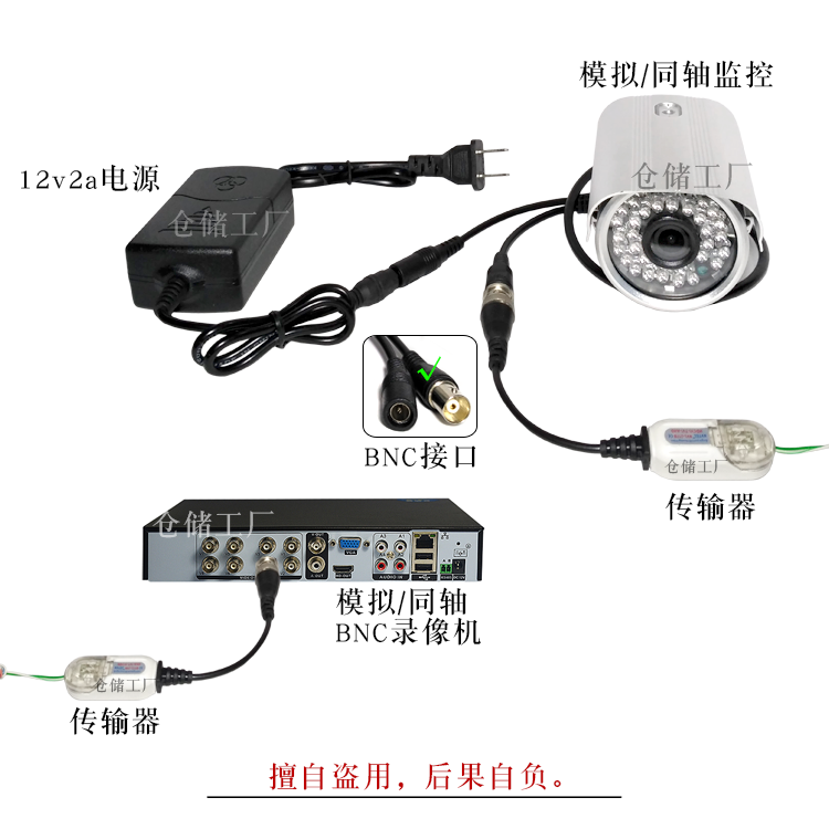 1 pair of 2 simulated surveillance camera video transmitter mesh cable to BNC connector converter