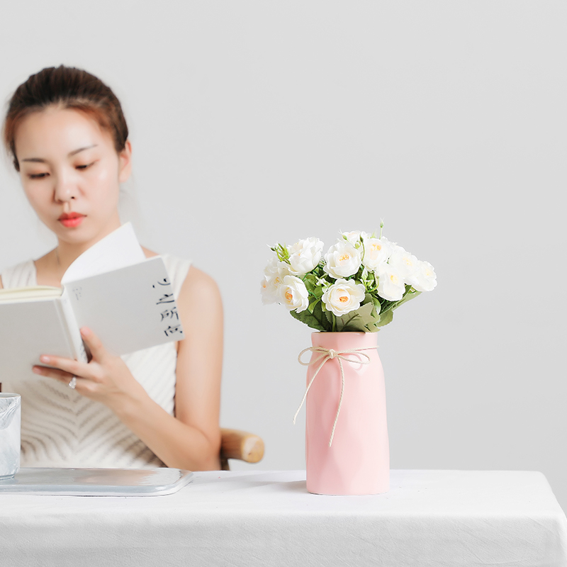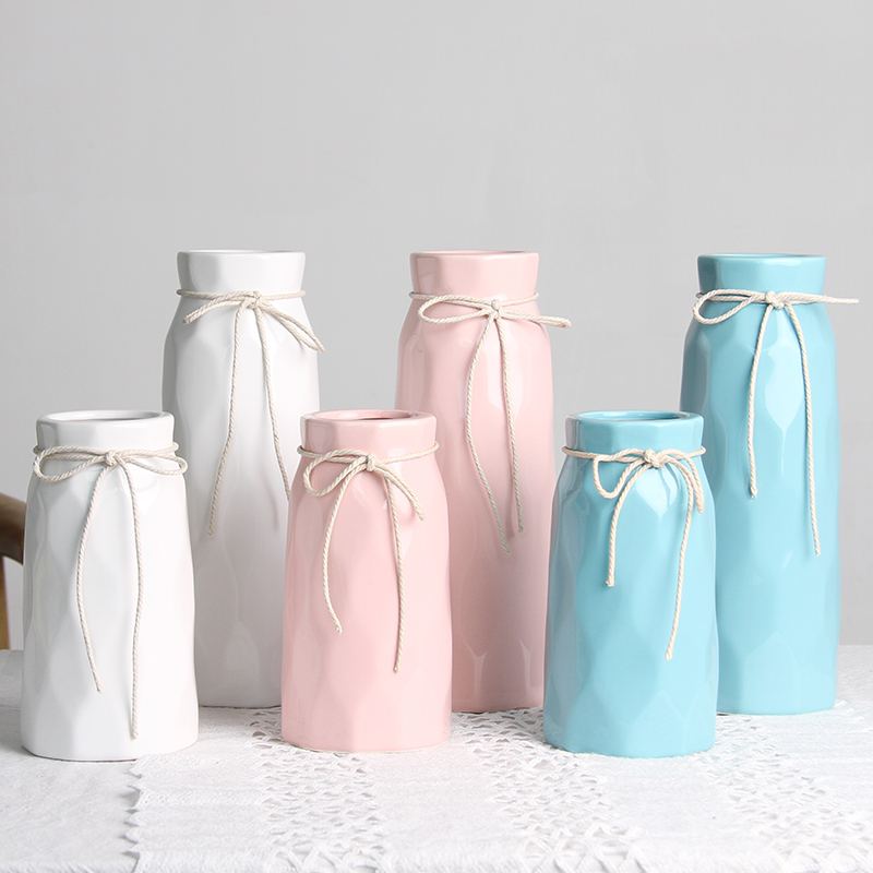Nordic Ceramic White Water Bacon Vases Small Frescoed Floral Table Flower Inserts Dry Flowers Home Adornment Living-room Pendulum