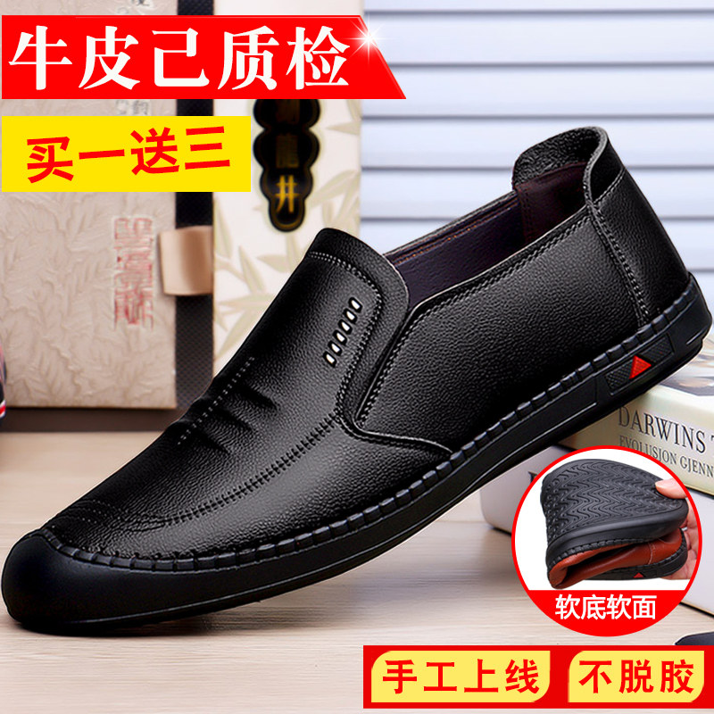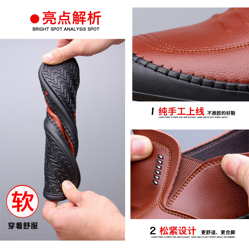 Men's leather shoes Men's leather casual shoes One foot pedal Men's shoes New brown Dad Shoe leather Soft bottom shoes men 's