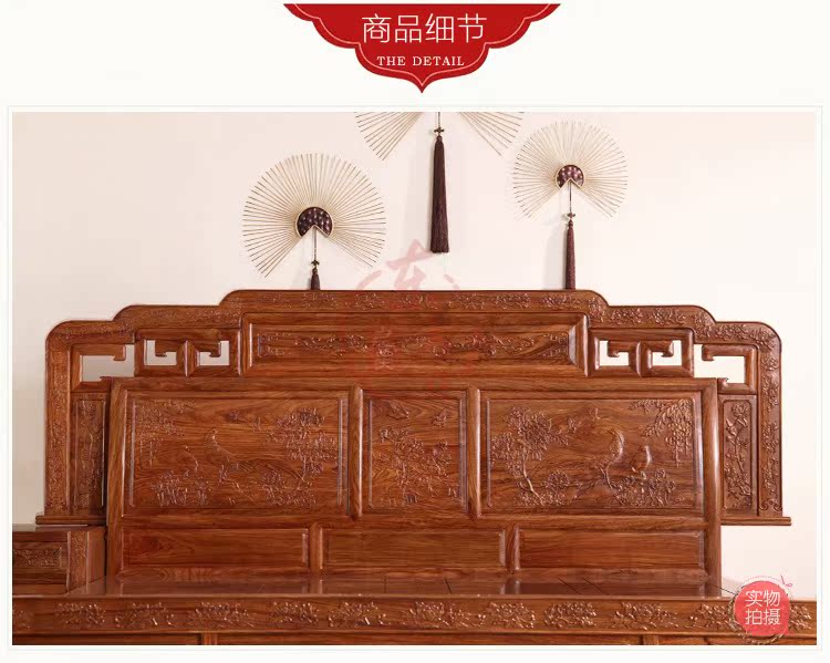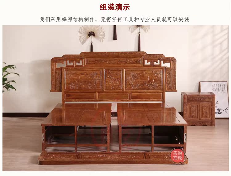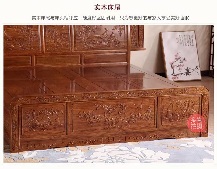 Red wood 1 8 m Double beds Modern New Chinese Hedgehog Purple Sandalwood 1 5 m Bed Imitation Ancient Solid Wood Bedroom Flower Pear Wood Bed