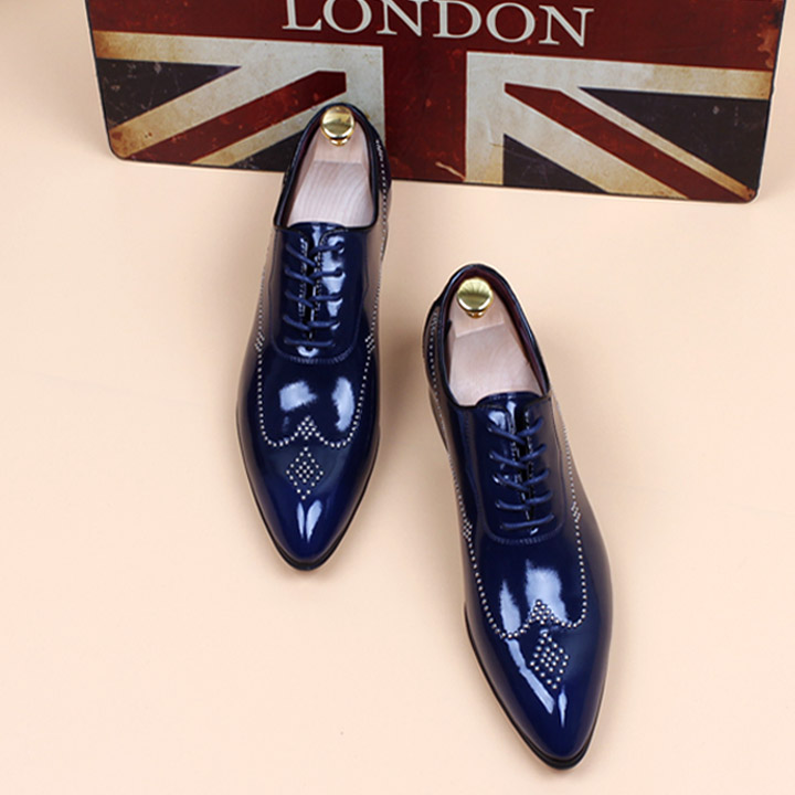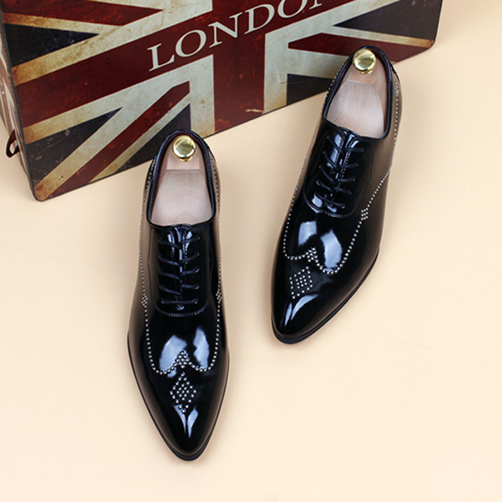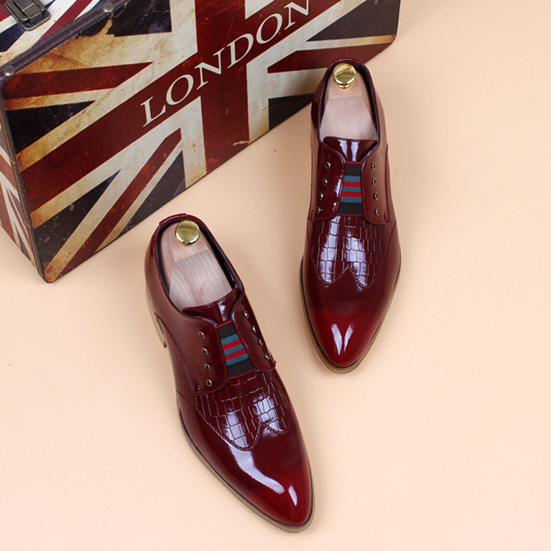 Casual business formal dress ribbon leather shoes Korean version increased patent leather men's shoes pointed toe set feet solid color banquet wedding shoes