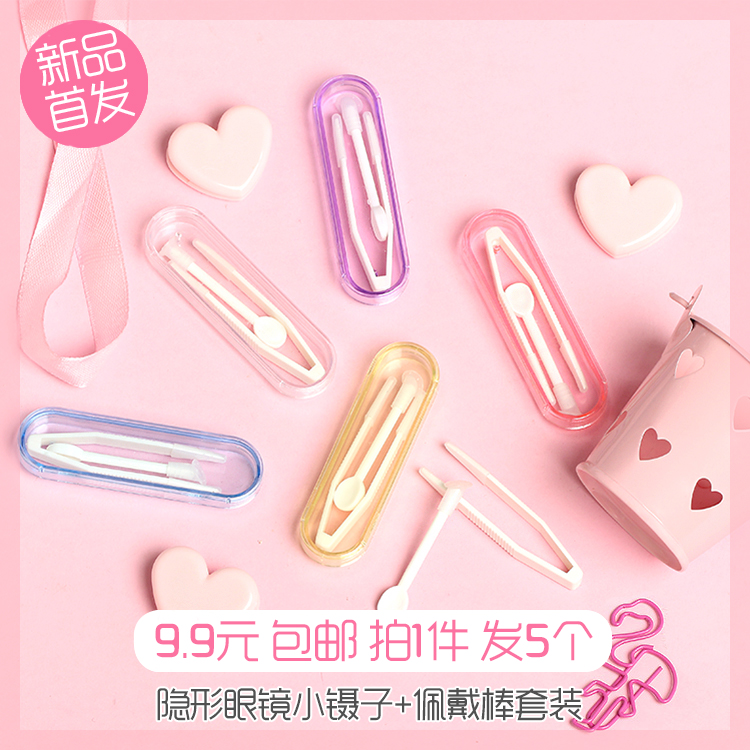 Shoot 1 shot 5 contact myopia glasses box suction stick clip tweezers beauty pupil partner box wear pick-and-wear tool cleaner