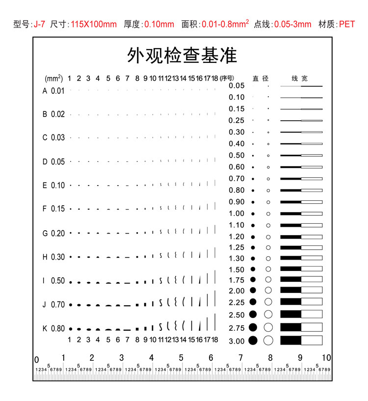 Filin ruler point line gauge foreign body comparison of card dirt points card gauge appearance defects compared to the benchmark J-7
