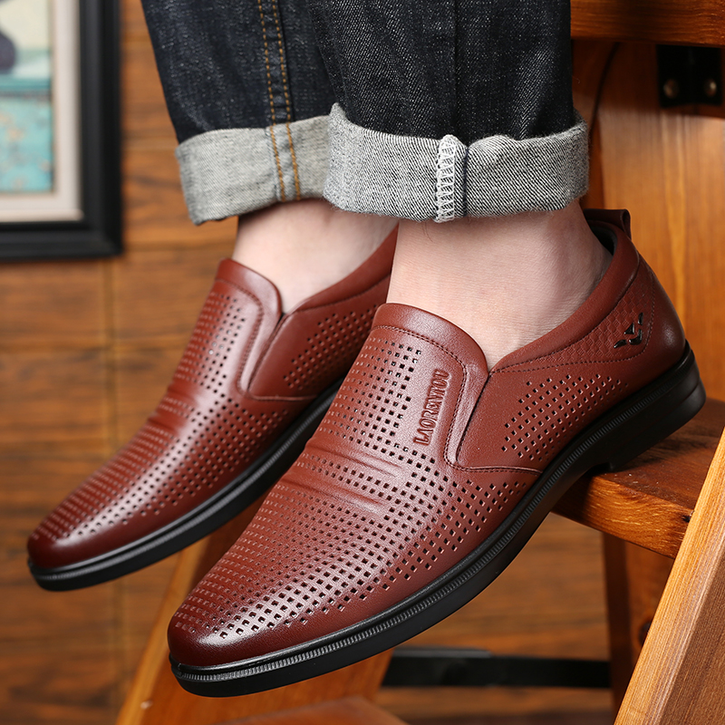 Old man's scalp shoes men's 2022 spring men's business casual leather shoes leather hollow breathable soft leather Korean men's shoes
