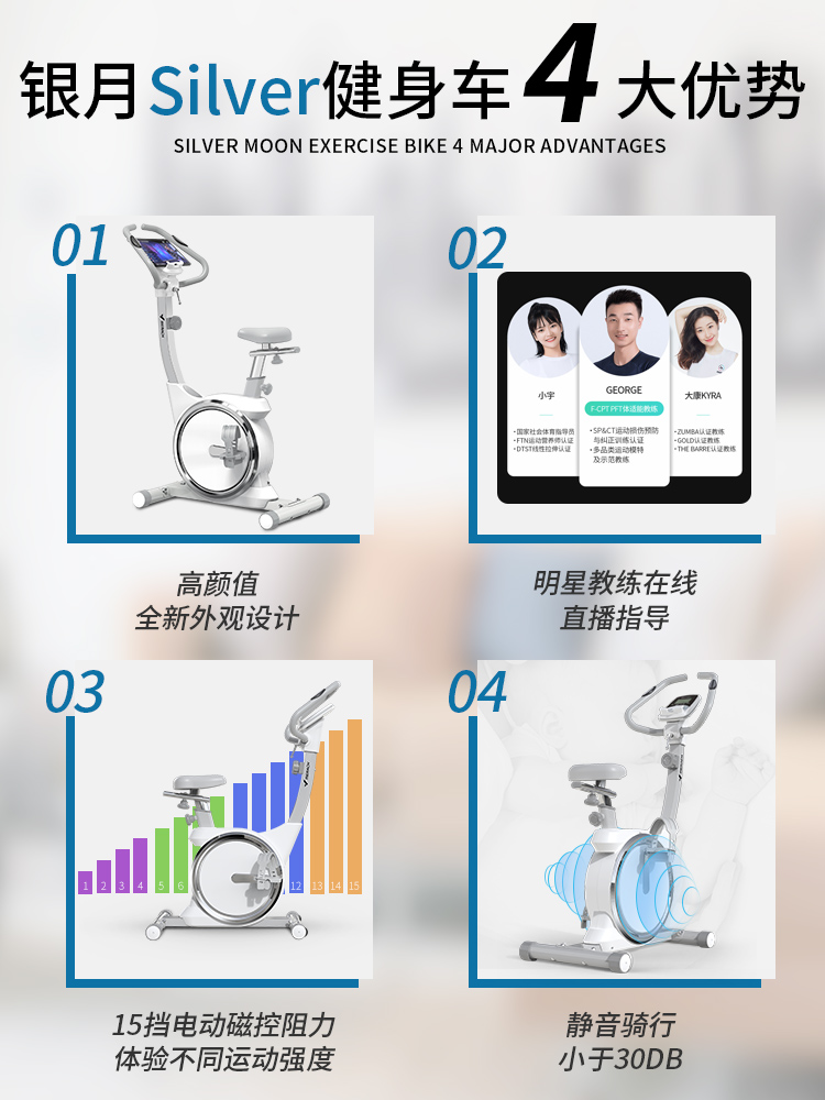 McRick Silver Moon Fitness Car Home Fitness Car Magnetic Control Bike Sports Weight Loss Equipment Indoor Ultra Silent